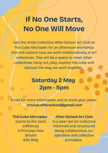 After-school Art Club invites you to an afternoon workshop on collective organising in the arts at social dreaming space The Cube Microplex. Through activities, play and shared making, we’ll explore how groups work together, make decisions, handle tension, and build forms of exchange and support. A space to test things out together rather than arrive with answers. Join us if you are experienced or curious about self-organisation in creative practice.